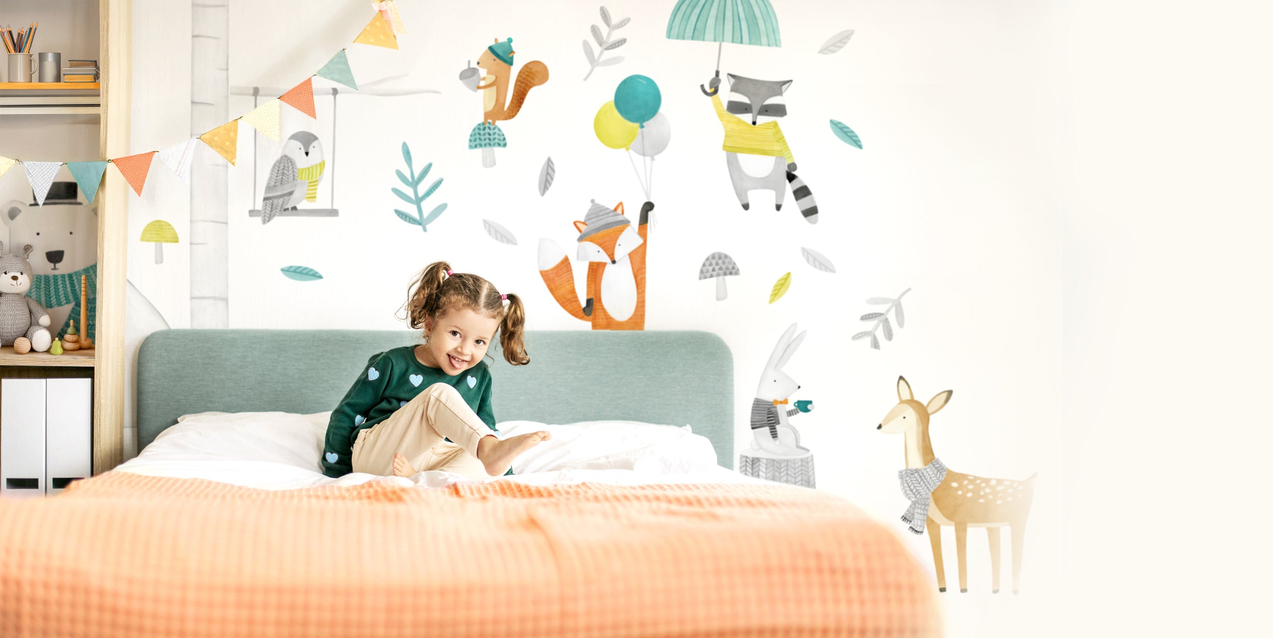 Pro tip: Place decals lightly. Reposition until they're just right. Then, smooth them to wall.